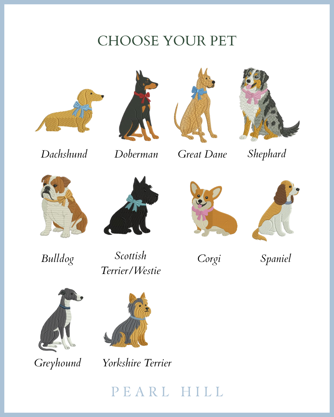 If you have any bespoke requests for example different pet colours add this into the description e.g "Dachshund dog in black".